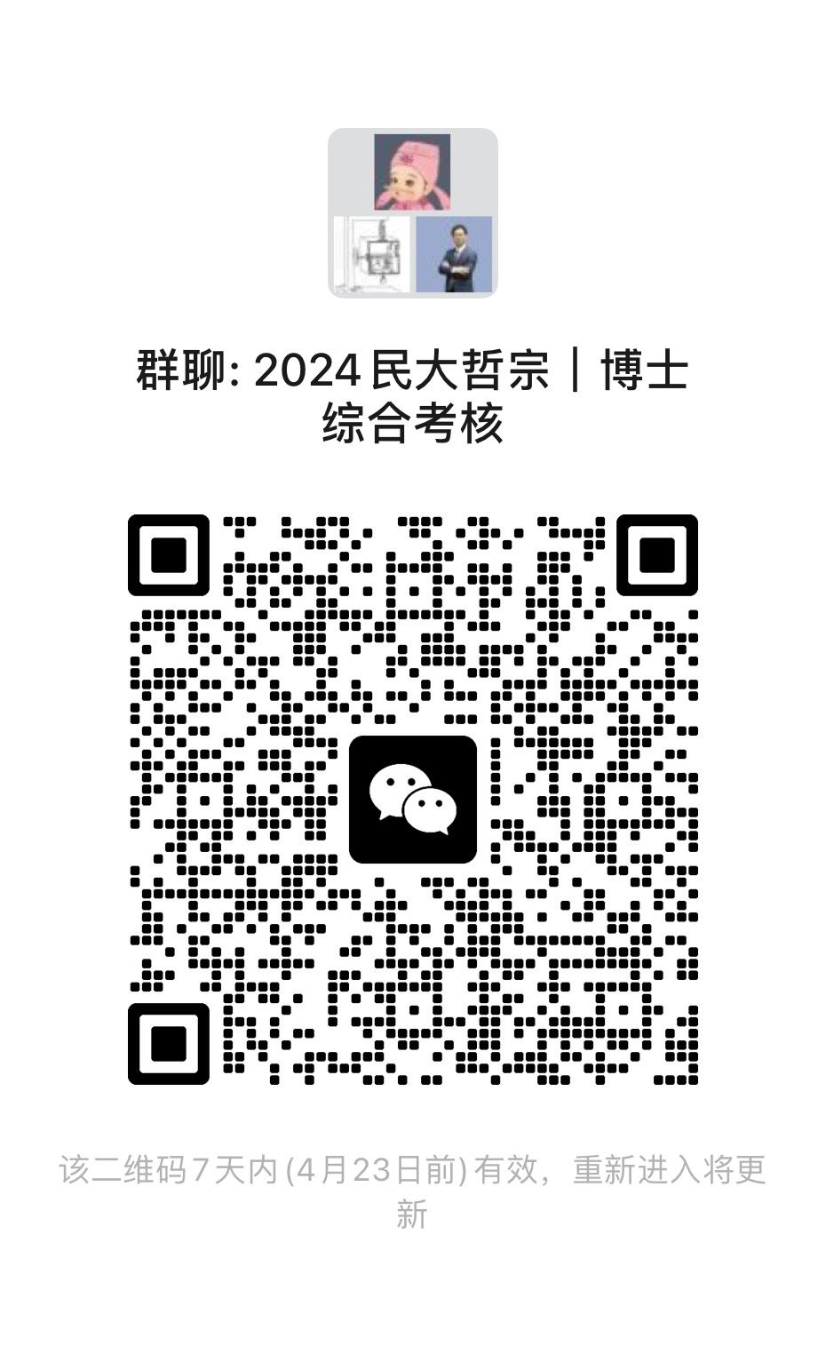 请所有进入2024年度综合考核的考生于2024年4月19日12:00前扫码入群,标注“姓名+专业+手机号”方可审核通过。