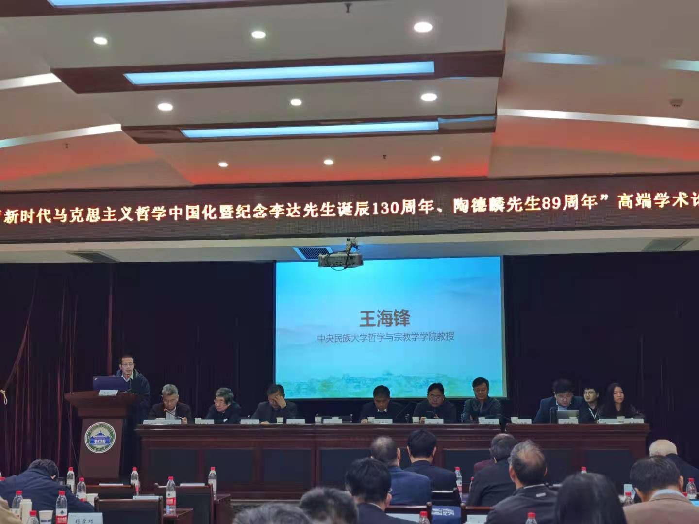 承办。王海锋教授作了主题为《重大哲学命题与构建当代中国马克思主义哲学学术体系》的大会发言。他提出,梳理近代以来中国马克思主义哲学研究的学术史,哲学理论创新与哲学命题的新释或发明相互交织,二者共同谱写了中国化马克思主义哲学的新篇章。新时代的中国马克思主义哲学研究及其学术体系建构,其聚焦点在于,对“铸牢中华民族共同体意识”、“构建人类命运共同体”、“实现人民对美好生活的向往”三个凝结着理论智慧和时代精神的哲学命题做出深入阐释,继而为实现中华民族伟大复兴的中国梦贡献思想智慧。
