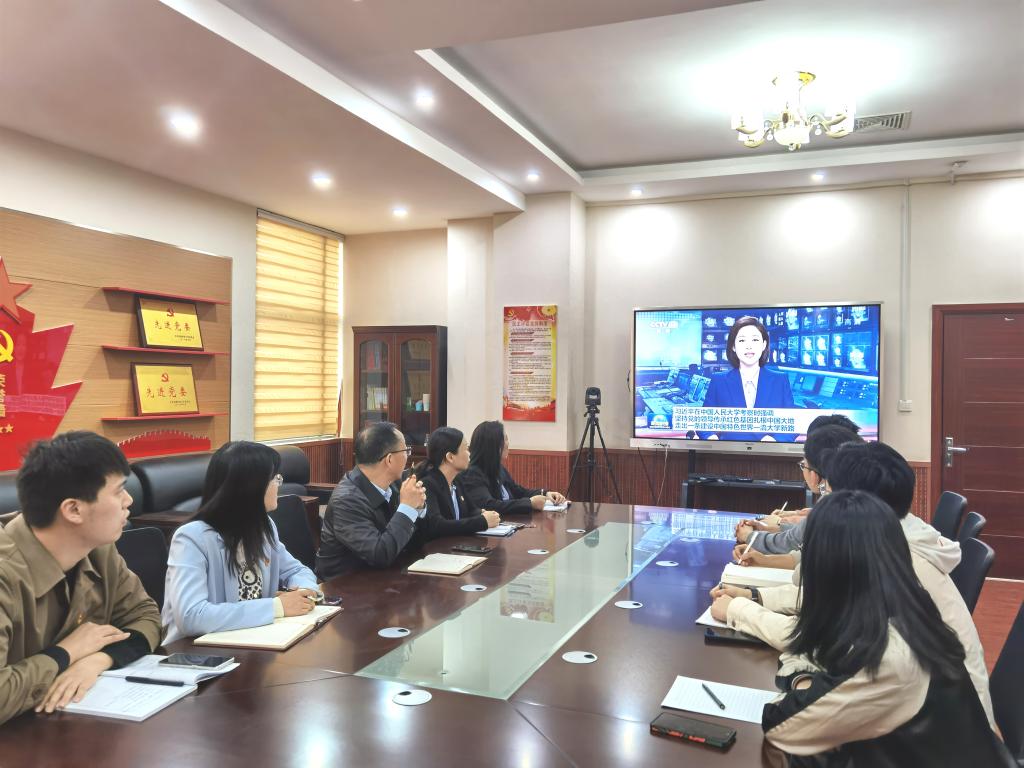 座谈会上,师生们一起观看了习近平总书记考察调研中国人民大学的新闻联播视频。赵秋燕领学了习近平总书记考察时的重要讲话精神内容。与会师生代表结合学习工作实际分享了心得体会,大家纷纷表示要始终牢记习近平总书记的谆谆教诲,坚定不移听党话、跟党走,用实干和担当肩负起民族复兴的时代重任,踔厉奋发、勇毅前进,立鸿鹄志,做奋斗者。