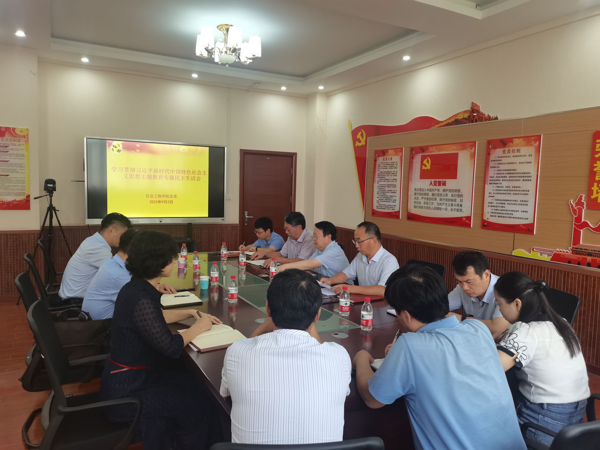 在工2-316党建活动室召开了处级领导班子学习贯彻习近平新时代中国特色社会主义思想主题教育专题民主生活会,班子成员中除张志勇副院长在外学习以外其余成员均参加会议,吴庆涛副校长、检视组机关党委刘慧君副书记和党政办邓瑞科长全程参与并进行了指导督导。