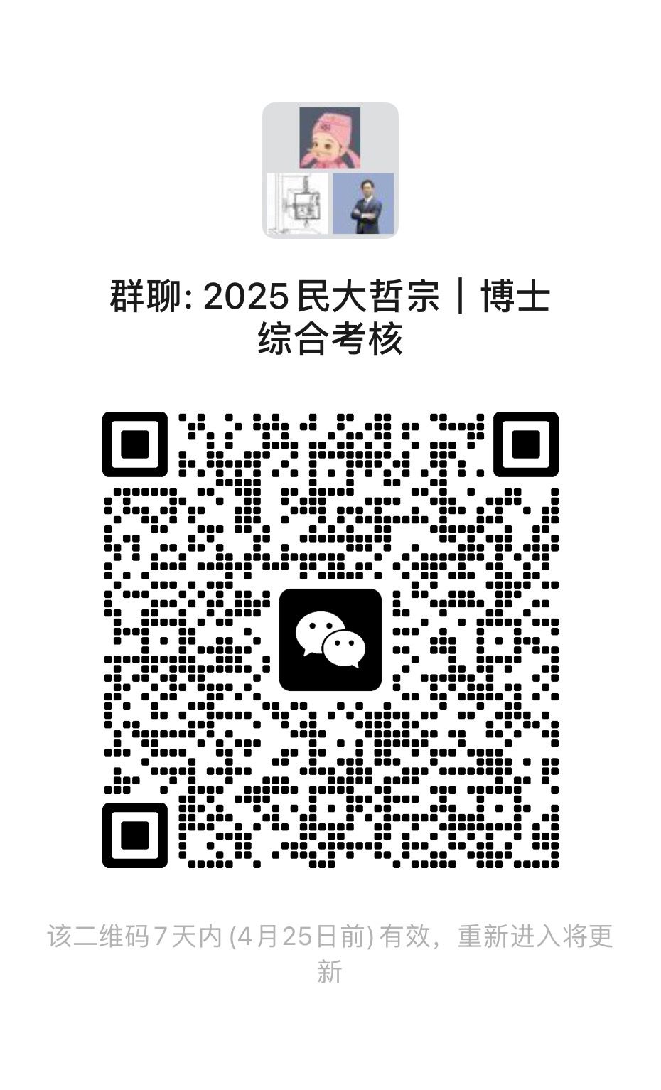 请所有进入2025年度综合考核的考生于2025年4月20日24:00前扫码入群,标注“专业+姓名+手机号”方可审核通过。